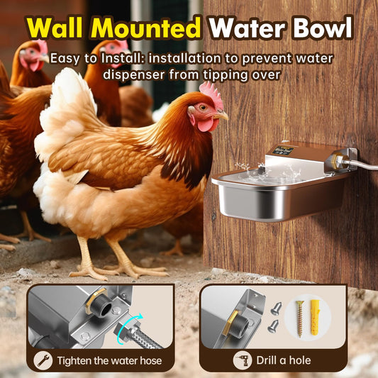 Automatic Water Dispenser for Dogs, Patented 3L Outdoor Dog Drinking Water Bowl, Stainless Steel Waterer Feeder Suitable for Chicken Livestock Animal,Fit 3/4'' GHT Faucet, Wall-Mounted, Easy to Clean
