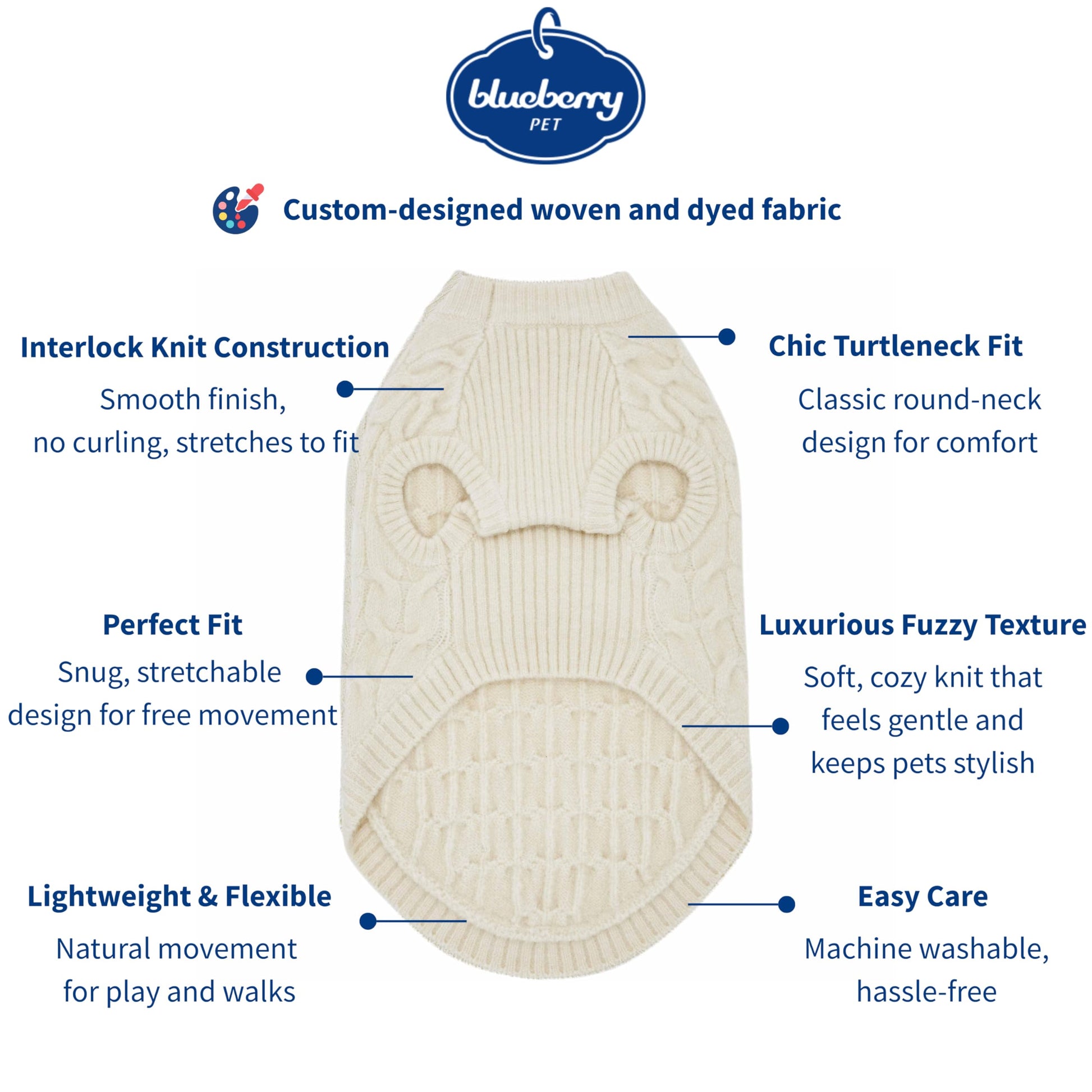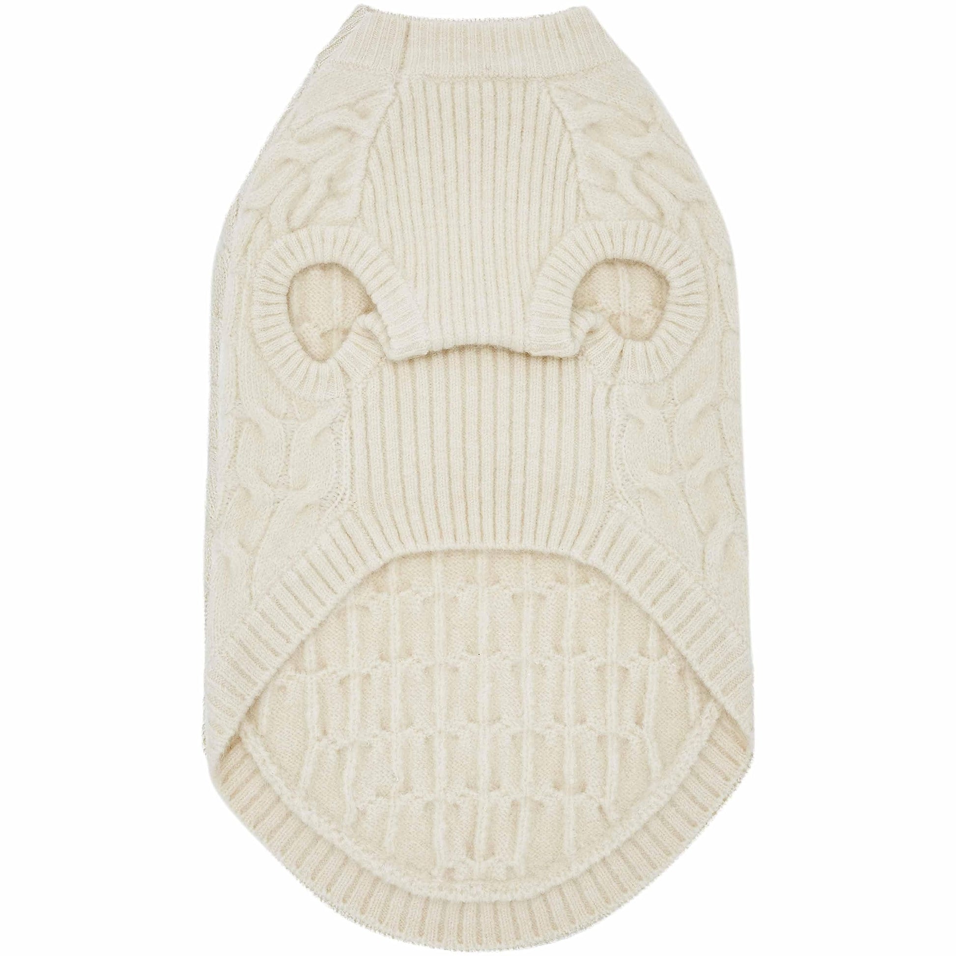 Blueberry Pet Classic Fuzzy Textured Knit Pullover Crew-Neck Dog Sweater in Ivory, Back Length 14", Pack of 1 Clothes for Dogs