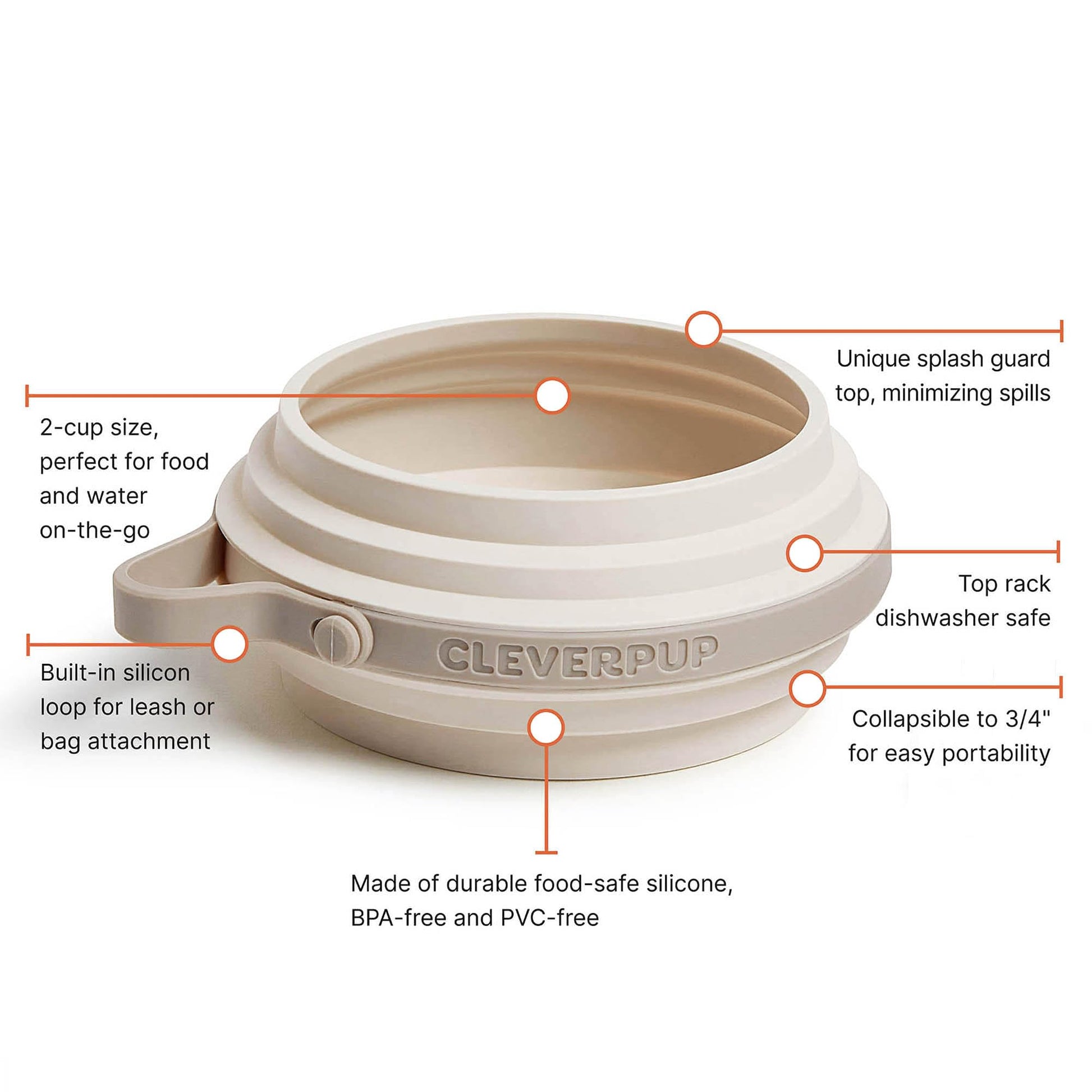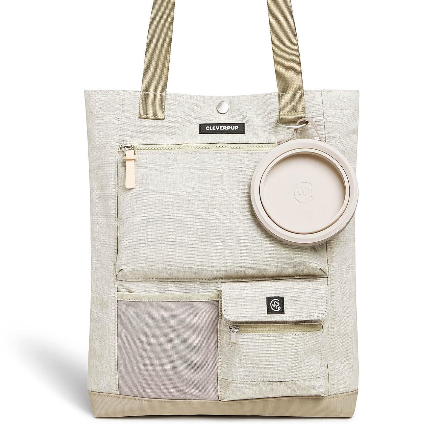 Cleverpup Park Pack 2-Piece Set Dog Gear Tote – Dog Travel Bag with 8 Pockets, Treat Pouch, Poop Bag Dispenser, Quick-Dry Ball Pocket, Collapsible Bowl, Perfect for Walks & Park Trips, Sand