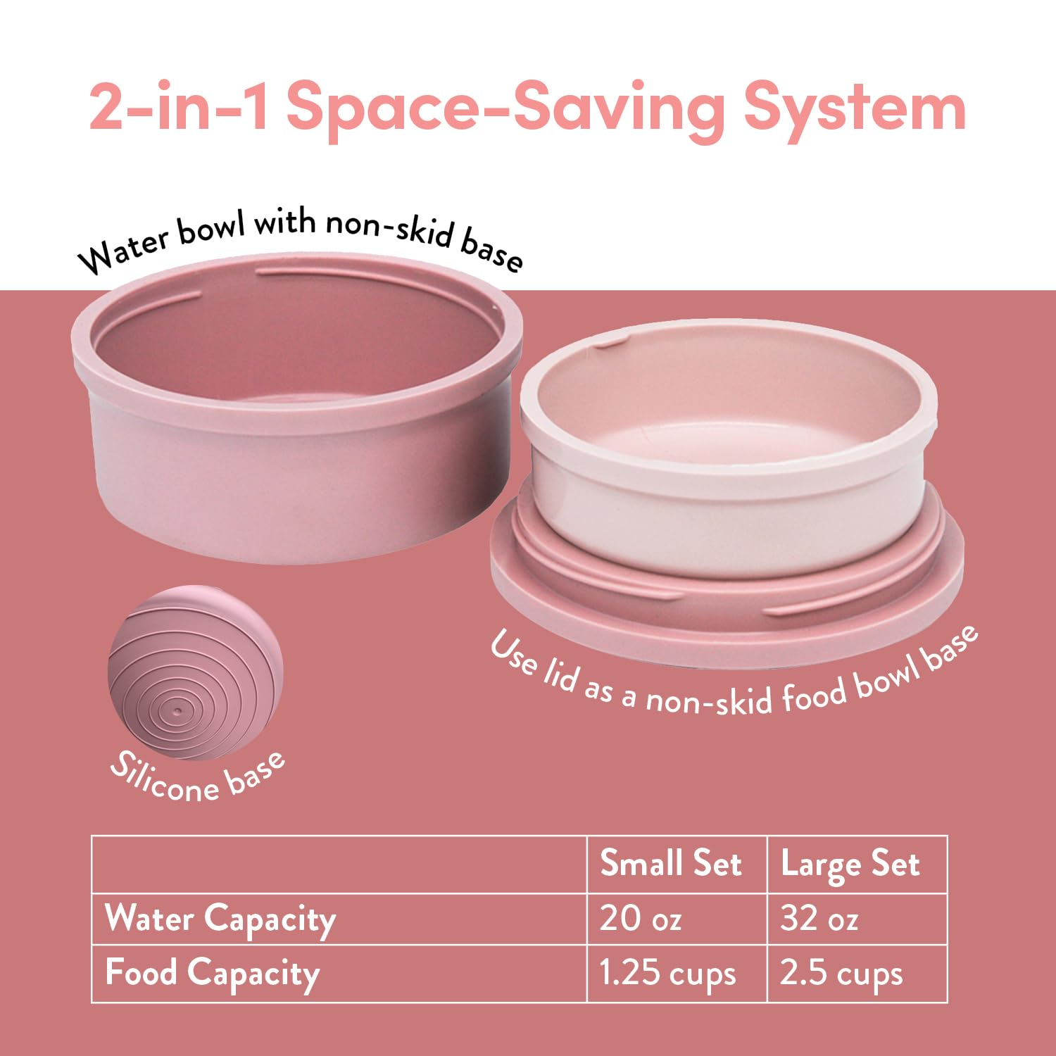 KindTail Dog Travel Bowls - Set of 2 Portable Pet Food & Water Dishes with Lid & Handle - Each Nesting Container Includes a Non-Slip Silicone Base - Microwave & Dishwasher Safe - BPA & Toxin-Free