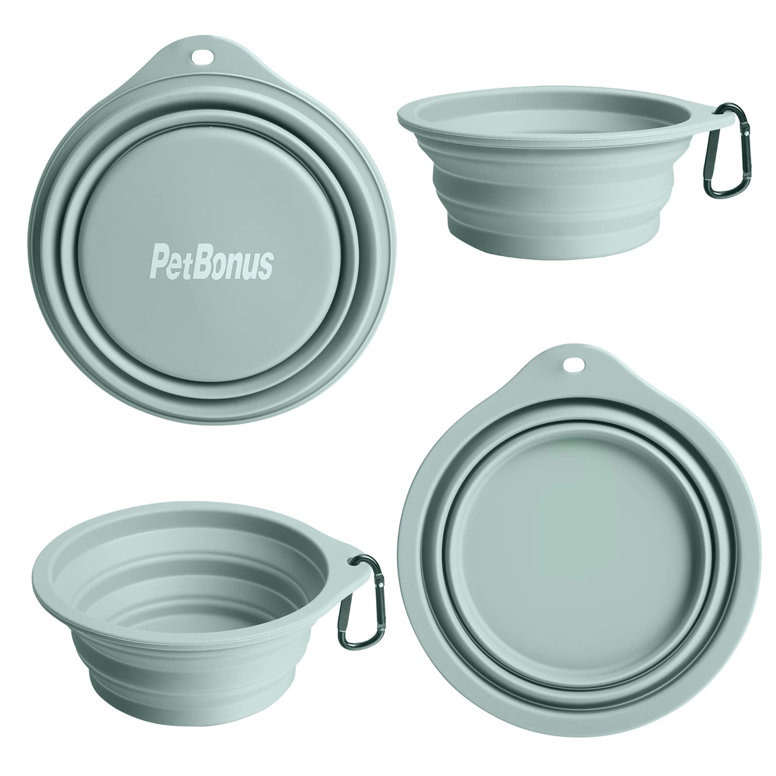 PetBonus 2-Pack Silicone Collapsible Dog Bowls, BPA Free Dishwasher Safe, Portable Foldable Expandable Travel Bowl, Food Water Feeding Cup Dish for Dogs Cats with 2 Carabiners (Turquoise, Tan)